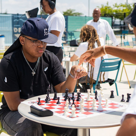 On July 19th, Wise Guy’s Chess Club teamed up with Make A Move LA to bring an electrifying and one-of-a-kind chess experience to the heart of Downtown Detroit at the scenic Robert C. Valade Park. The collaboration gave birth to Make A Move Detroit, a unique chess tournament that merged strategy, community, and creativity in a way the city has never seen before.